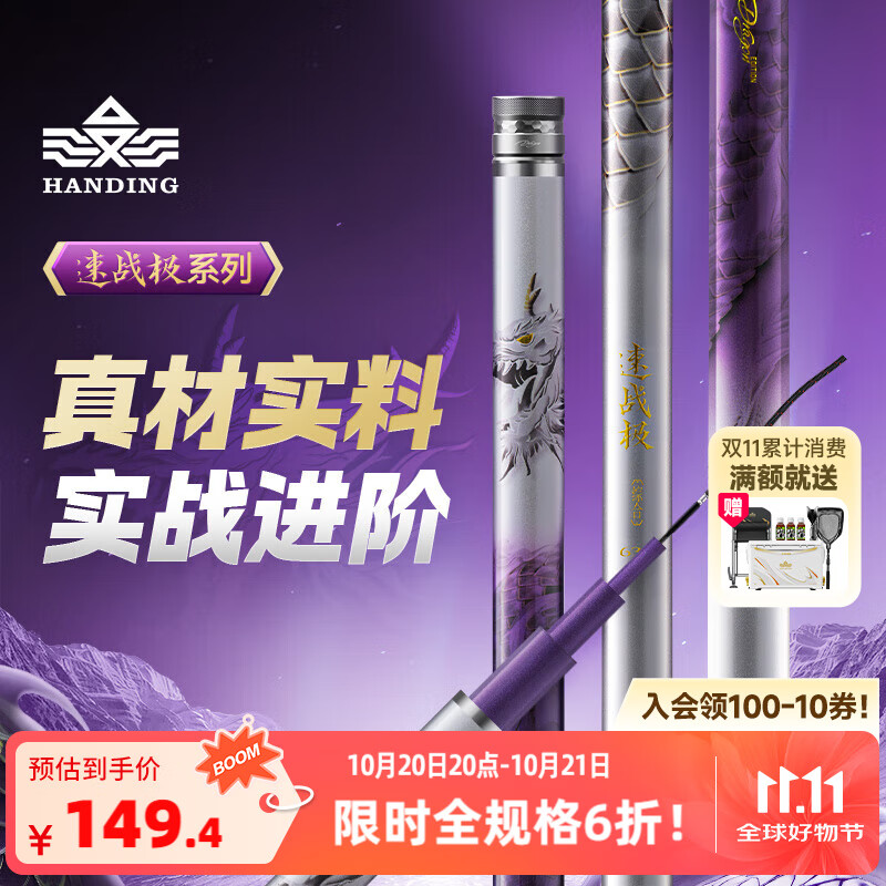 汉鼎速战极综合小综合鲢鳙竿进阶鱼竿手竿碳纤维钓鱼杆超轻手杆台钓竿 4.5m 「轻硬综合」25斤内中小个体