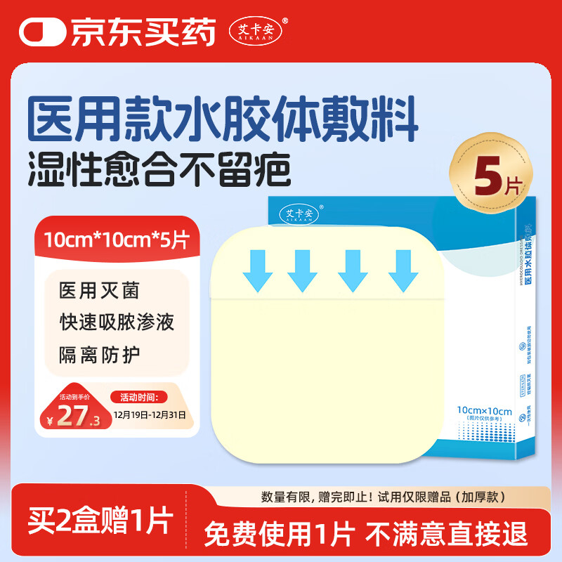 艾卡安医用水胶体敷料贴医用痘痘贴湿性愈合敷料人工皮水凝胶10cm*5片