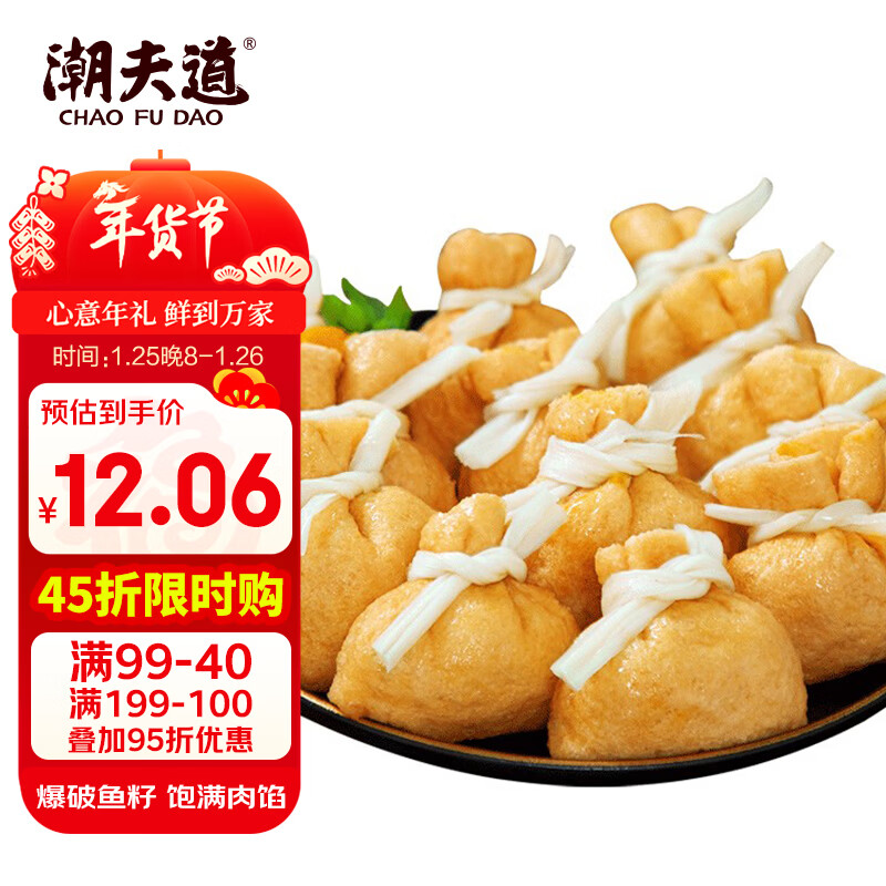 潮夫道鱼籽福袋150g 火锅食材关东煮丸料包心鱼丸子麻辣烫部队火锅烧烤