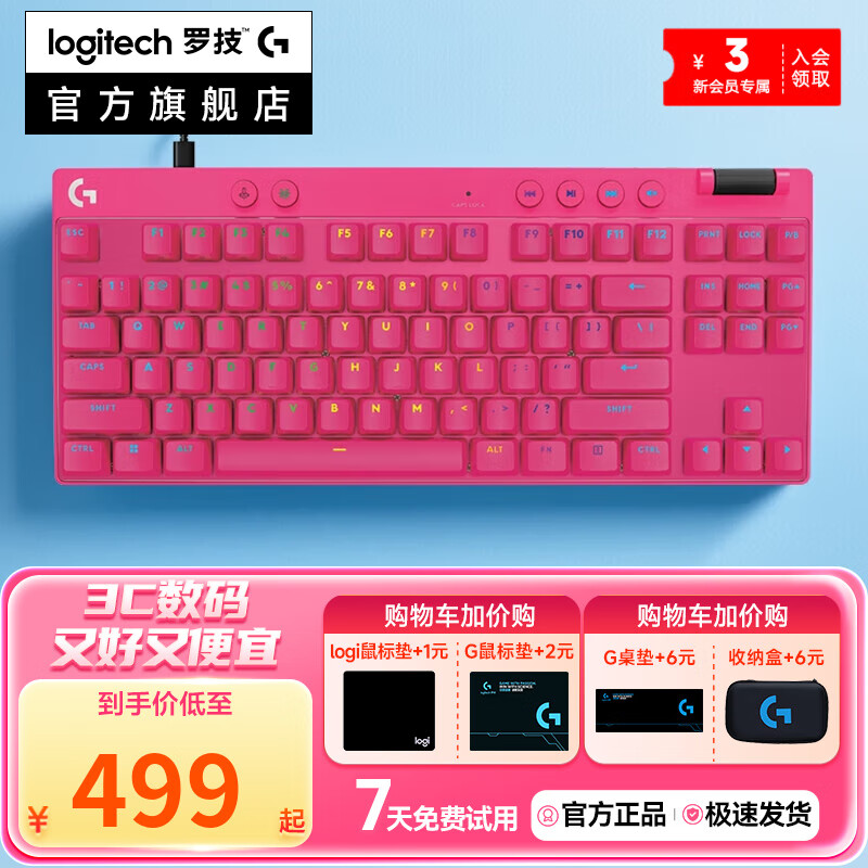 罗技 G PRO X TKL/RAPID机械轴/磁轴游戏键盘RGB灯效87键夜魔英雄联盟吃鸡FPS电竞二手 PRO X TKL RAPID磁轴 粉色有线 99成新