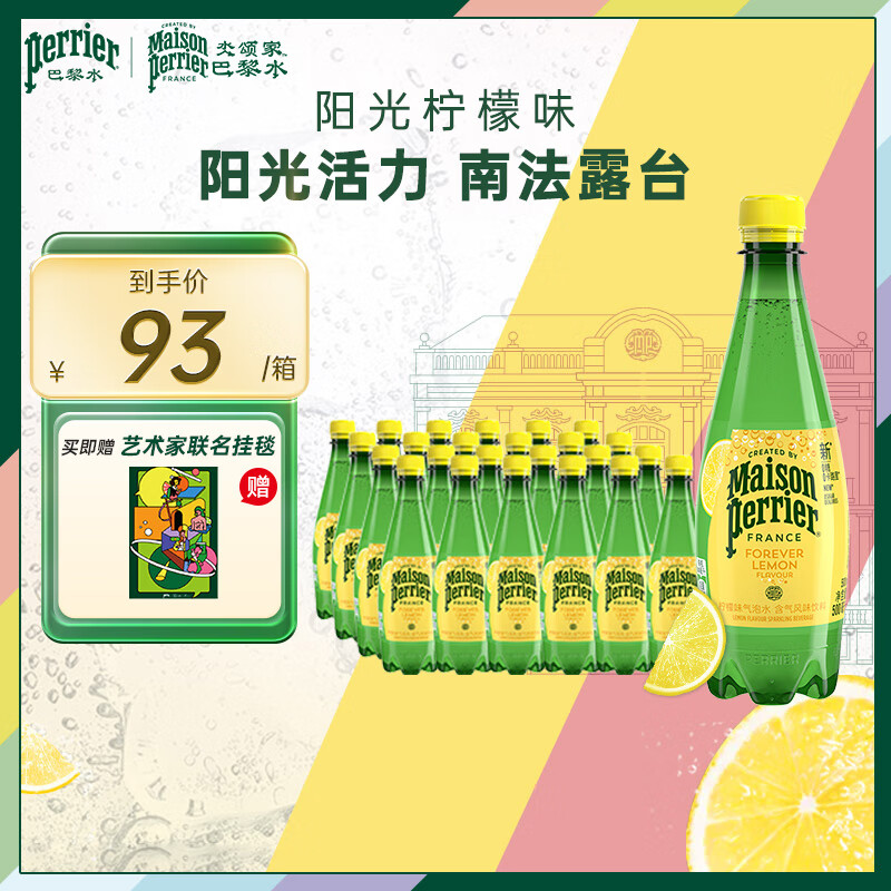 Perrier法国原装 进口气泡水 矿泉水 天然充气饮用水 0糖 柠檬味500ml*24瓶-效期26年2月