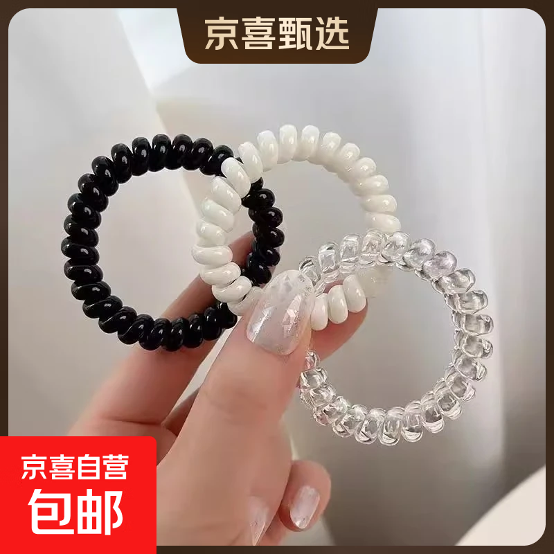 儿童无痕不伤发头绳电话线发圈黑白色透明电话线发圈高级感耐用女 黑+白+透明各一根