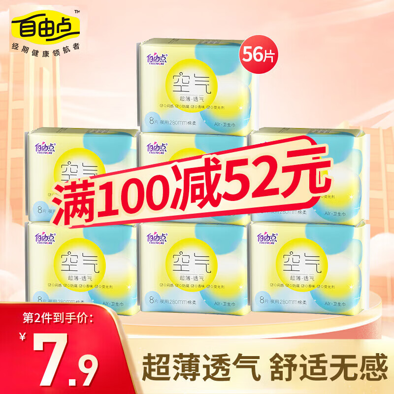 自由点空气系列卫生巾日夜组合装超薄绵柔透气少女经期姨妈巾 夜用280组合56片【超值试用】
