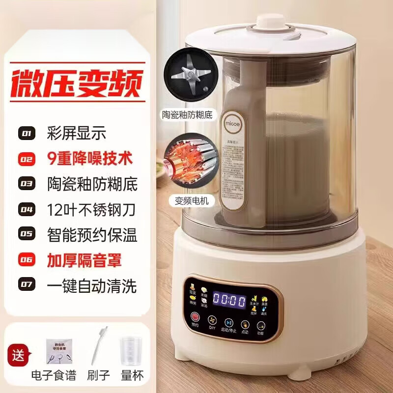 小米锅巴柔音破壁机家用加热全自动小型豆浆机非静音多 高配12叶刀头(隔音罩+彩屏+防糊