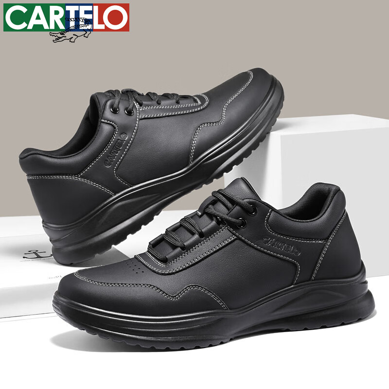 卡帝乐鳄鱼男鞋秋冬季新款男士休闲皮鞋时尚运动休闲鞋百搭舒适旅游鞋子 黑色 5310 41