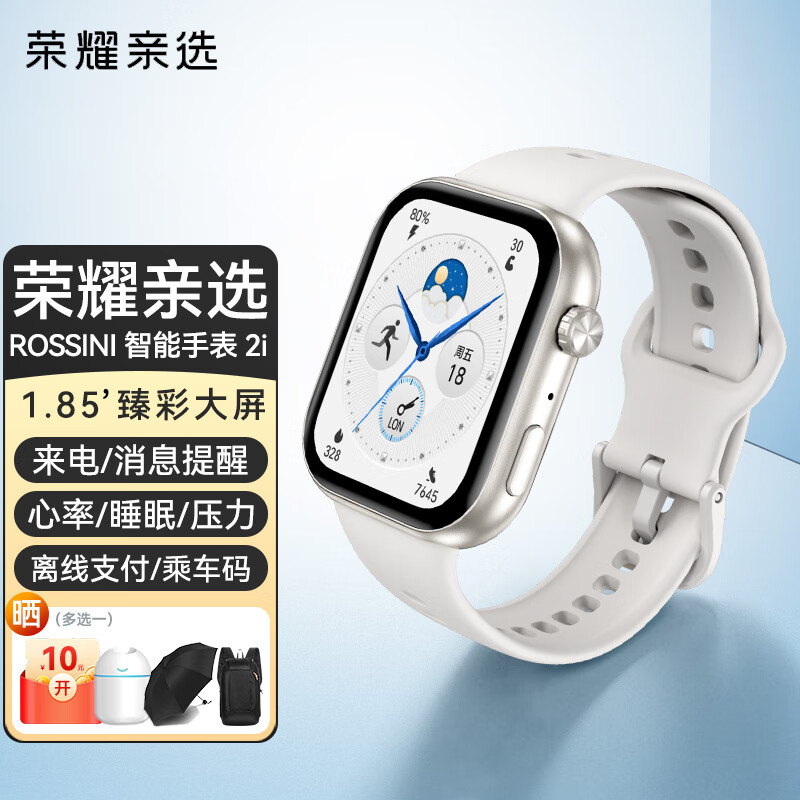 荣耀亲选ROSSINI智能手表2i原装蓝牙通话AMOLED大屏1.85英寸watch运动全天候健康监测学生男女新款腕带 智能手表2i【星光白】硅胶表带