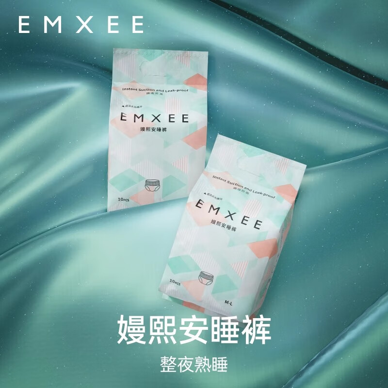 嫚熙(EMXEE)一次性安睡裤经期用防漏夜安裤卫生巾内裤2包*10片 M-L 适用臀围:80-105cm 10片 2包