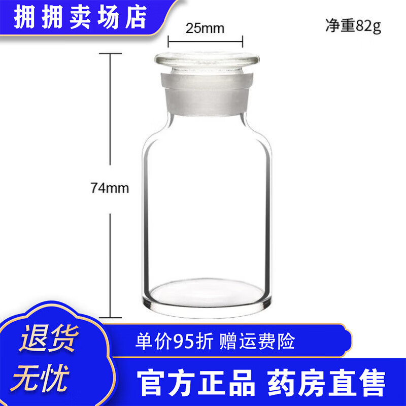 通用广口瓶试剂瓶玻璃大口白色棕色碘伏酒精瓶磨砂口密封rmjx 透明30ml