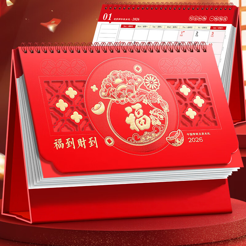 朗捷台历2026年日历红色马年月历大格子书写计划本式年历办公桌面日历摆件桌历可定制