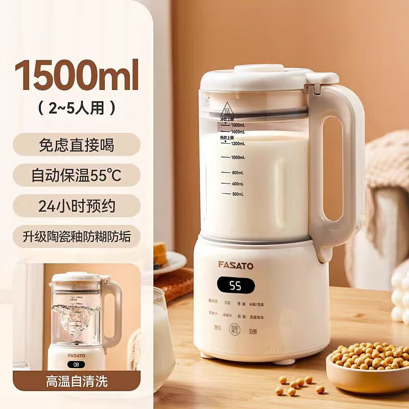 小米锅巴破壁机豆浆机16叶刀头迷你家用多功能全自动 16叶精刀[1.5L]容量