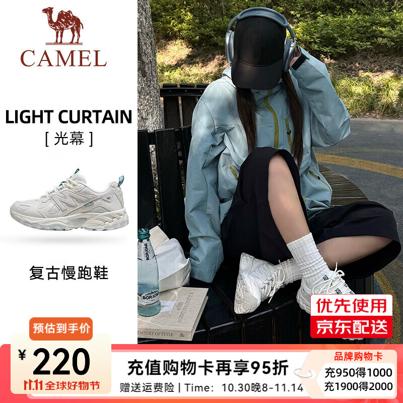 骆驼(CAMEL)光幕复古慢跑步男鞋缓震休闲女运动鞋子 7007,象牙白/荞麦灰,女 38
