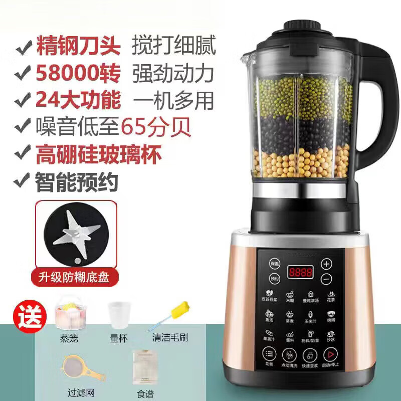 小米锅巴破壁机加热家用全自动豆浆机多功能智能料理果汁辅 香槟金顶配款+防糊底盘