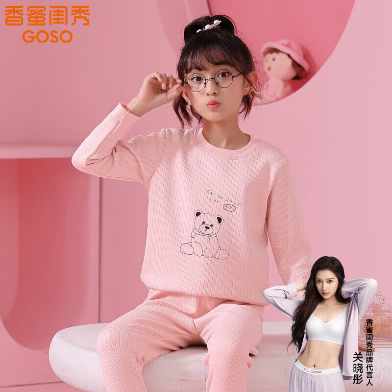 香蜜闺秀秋冬新品可爱秋衣秋裤保暖内衣可外穿睡衣套装 浅粉 XL