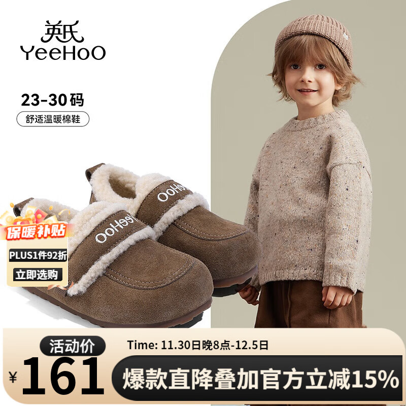 英氏童鞋女童棉鞋2025冬季新款加绒保暖鞋子儿童二棉鞋皮鞋女孩勃肯鞋 卡其色二棉 27 内长17.2cm脚长16.2-16.4cm