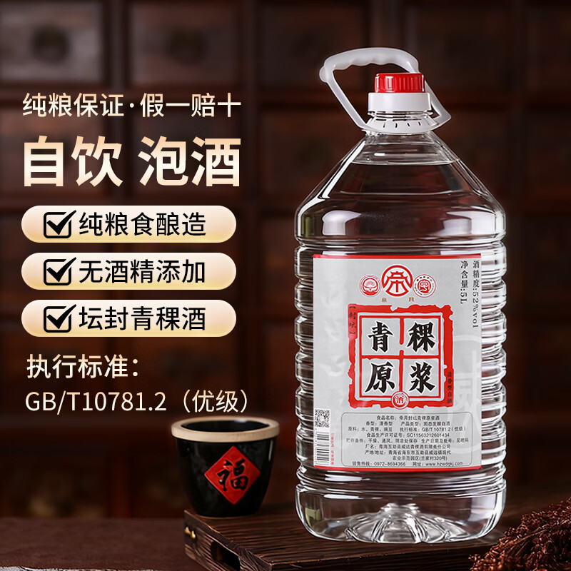 帝月清香型纯粮食桶装白酒互助青稞酒52度散装5L口粮酒泡药酒粮食酒 52度 5L 1桶