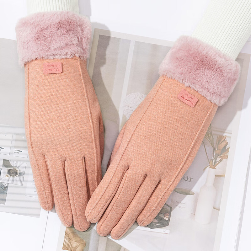 达芬奇密码 冬季保暖可爱女生日系太阳花扣加绒分指手套带触屏 立线毛口粉色