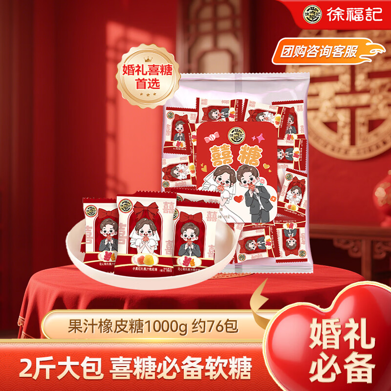 徐福记果汁橡皮糖1000g qq糖软糖 儿童糖果 休闲零食 结婚喜糖约76包