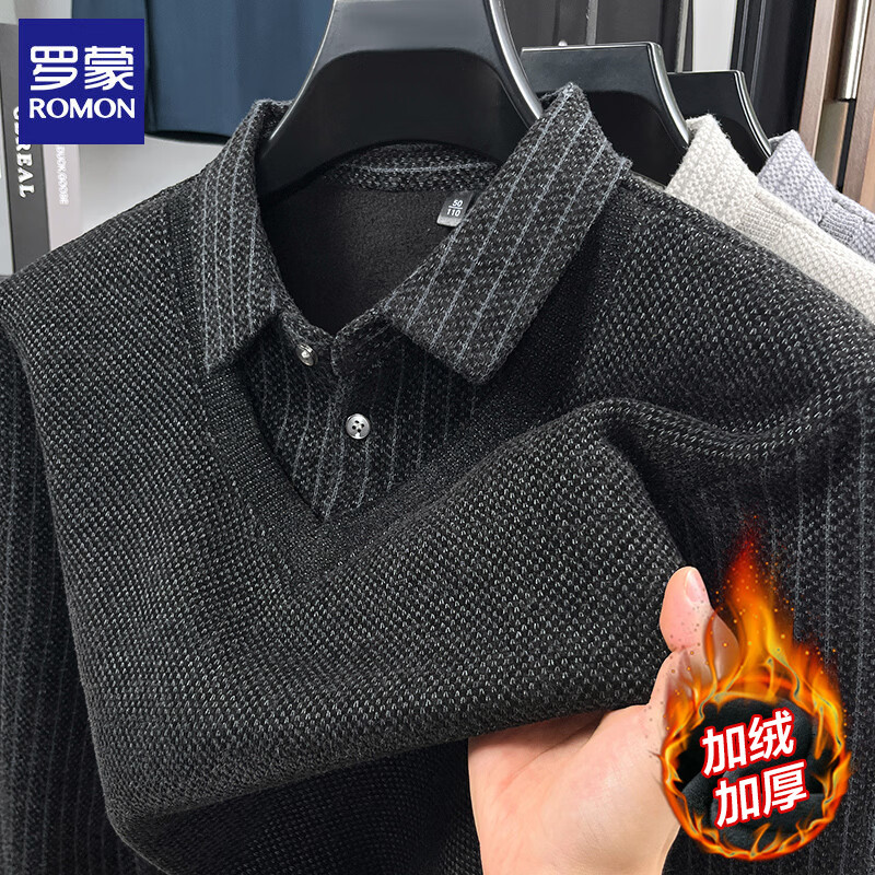 罗蒙(ROMON)仿雪貂绒假两件加绒毛衣2025秋冬季新款保暖男士打底针织衫上衣 221黑色 2XL (建议体重140-155斤)