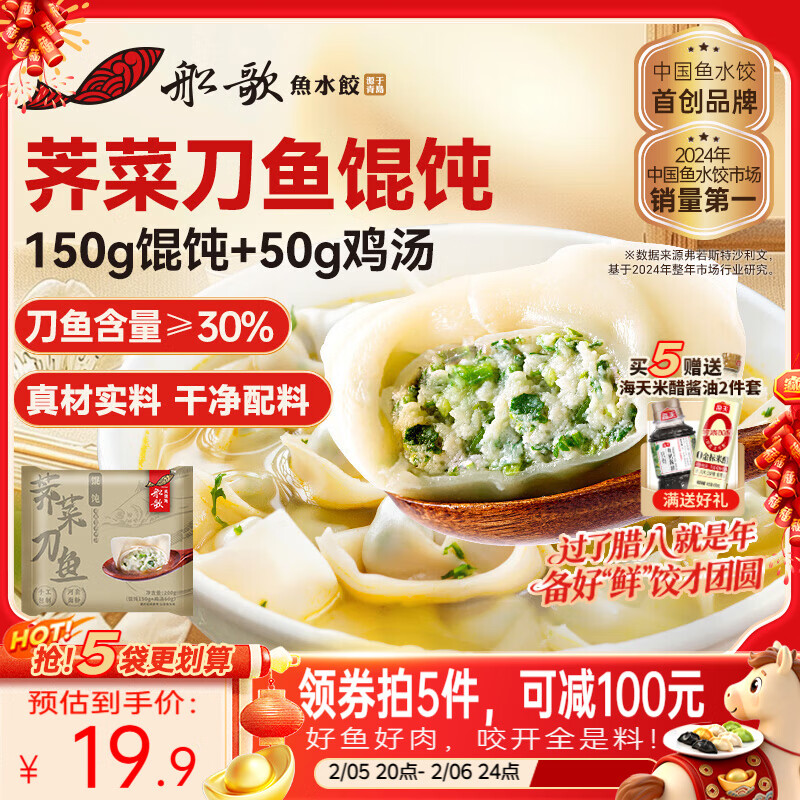 船歌鱼水饺 荠菜刀鱼鸡汤馄饨云吞200g/15只(150g混沌+50g鸡汤)早餐年货送礼