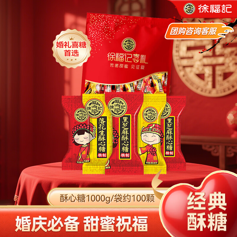 徐福记酥心糖1000g/袋 约100颗 酥糖糖果 零食 结婚喜糖盒散装伴手礼