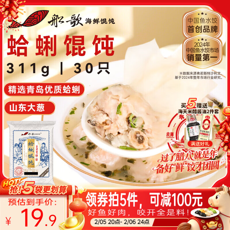 船歌鱼水饺 蛤蜊野馄饨311g30只儿童早餐抄手小云吞紫菜虾皮混沌 年货送礼