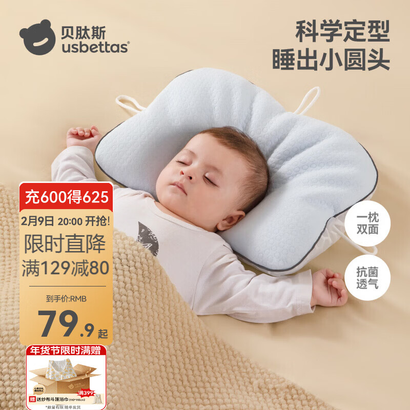 贝肽斯婴儿定型枕6个月以上睡圆头新生儿宝宝枕四季通用 蓝色