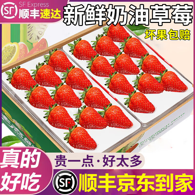 粤迎大凉山奶油草莓【JD顺丰多地次日达】牛奶草莓露天红颜草莓新鲜 2斤精选装【单果12g+】净1.1斤