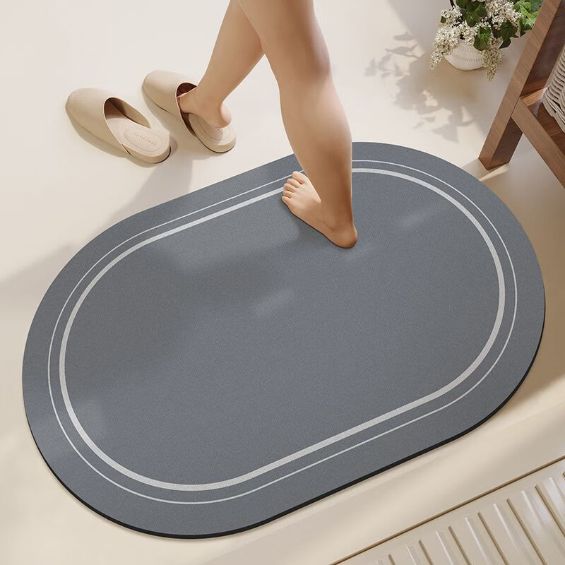 KAYE硅藻泥软垫浴室防滑吸水地垫厕所卫生间速干脚垫门口厨房入户垫子 GZN-如歌-烟灰-椭圆 40x60 cm
