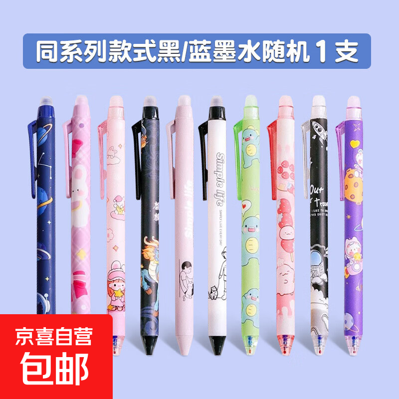 【卡皮巴拉】按动可擦笔小学生专用按压热可擦中性笔笔芯0.5晶蓝黑色魔力摩易可擦写易可摩擦磨易儿童卡通 1支按动可擦笔(款式随机) 0.5mm
