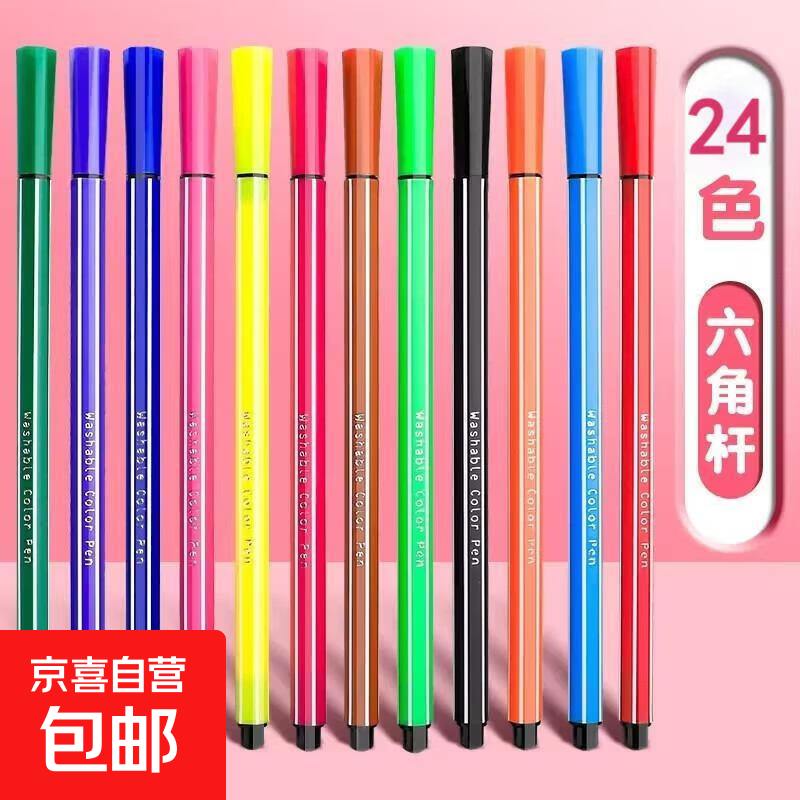 食品级儿童绘画笔套装材料软头水彩笔儿童可水洗无毒小学生专用24色宝宝画画12色36色18色可洗 袋装24色水彩笔