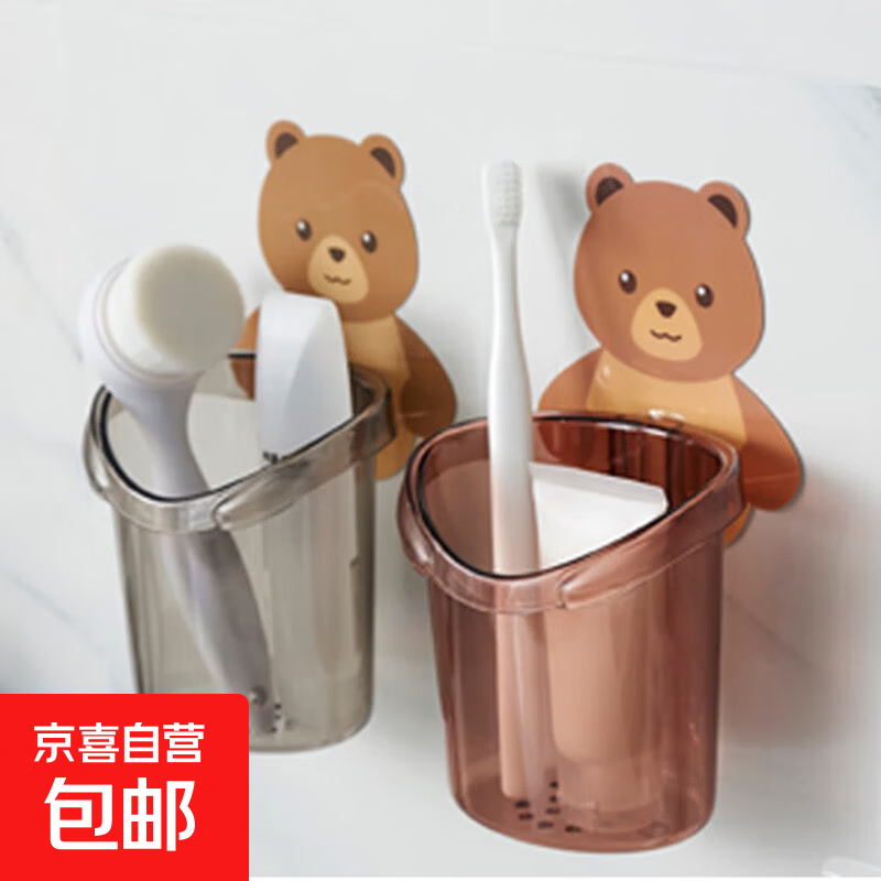 文教文化浴室牙刷杯卫浴壁挂床头梳子皮筋化妆品收纳盒牙膏小熊抱抱置物架 小熊牙刷杯随机色2个