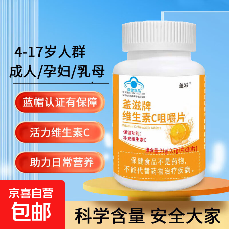 蓝帽认证维生素C咀嚼片补充维生素儿童老人青少年1瓶30片装 1瓶【体验装】