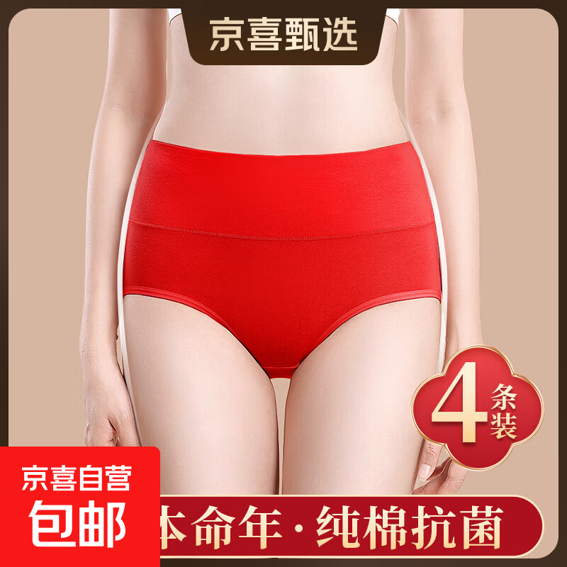 纯棉女士内裤本命年红色女生三角裤衩高腰收腹大码2026年结婚新款 1条-红色 XL 120-145斤