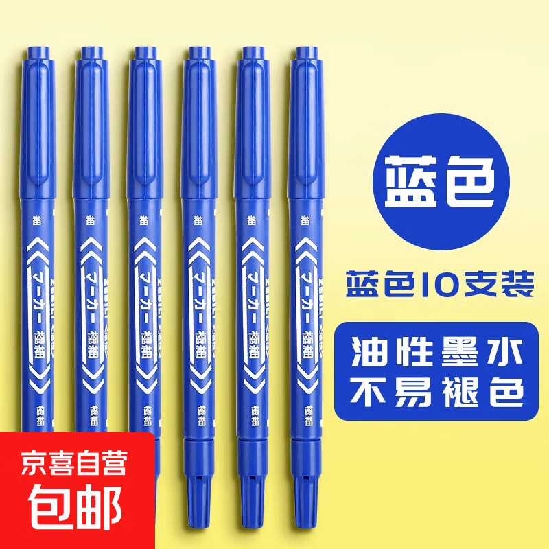 彩色双头油性记号笔勾线笔美术专用小学生儿童黑色粗细两头防水不掉色勾边笔描边幼儿园绘画画 10支 蓝色油性双头