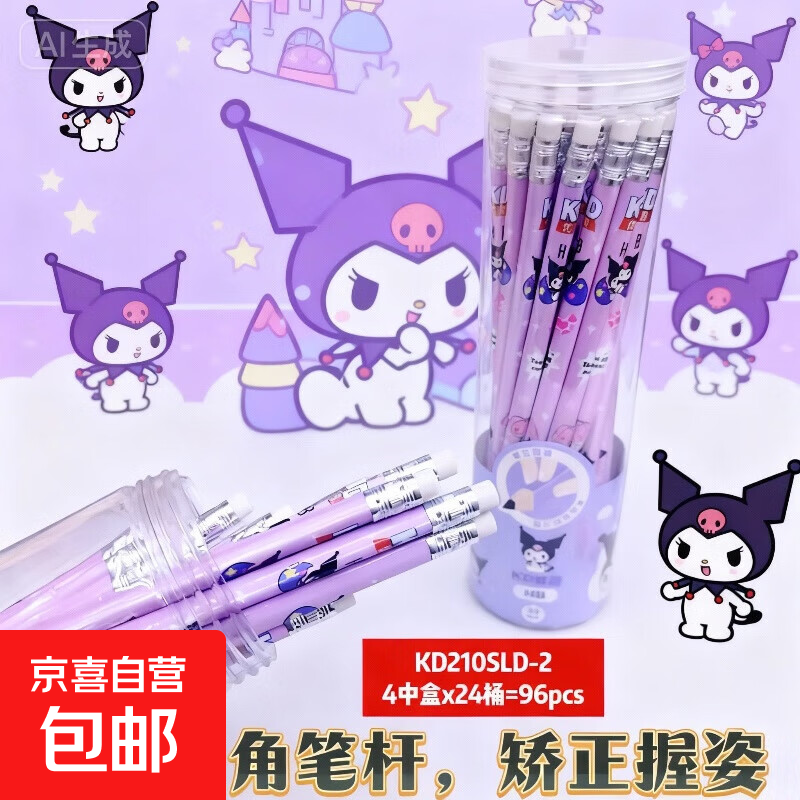 (铅笔优选)小学生专用HB铅笔儿童日常练字原木铅笔可爱卡通三角笔杆抓握舒适 三角杆铅笔(紫色)210SLD-2 体验款(4支铅笔)