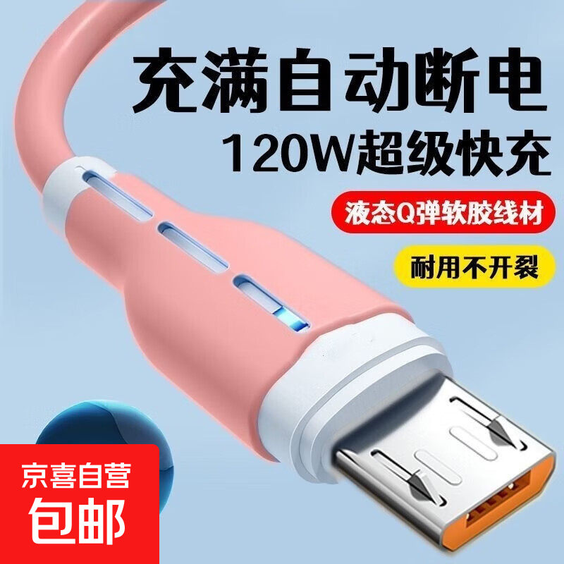 液态硅胶安卓数据线micro梯形口usb通用充电器线快充闪充适用华为vivo手机充电宝4A 2米带灯可爱粉安卓梯形口
