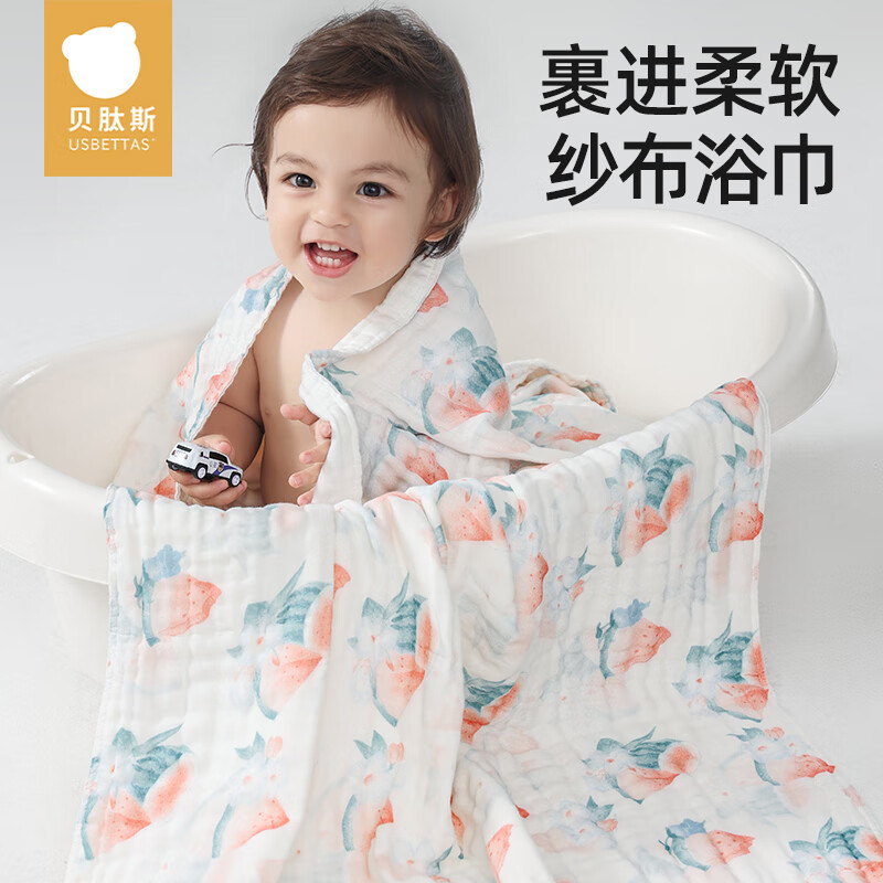 贝肽斯儿童浴巾纱布婴儿a类新生儿洗澡巾纯棉速干不掉毛大尺寸毛巾 6层柔纱【7A抗菌 100%纯棉】威尔斯海洋 95x95cm