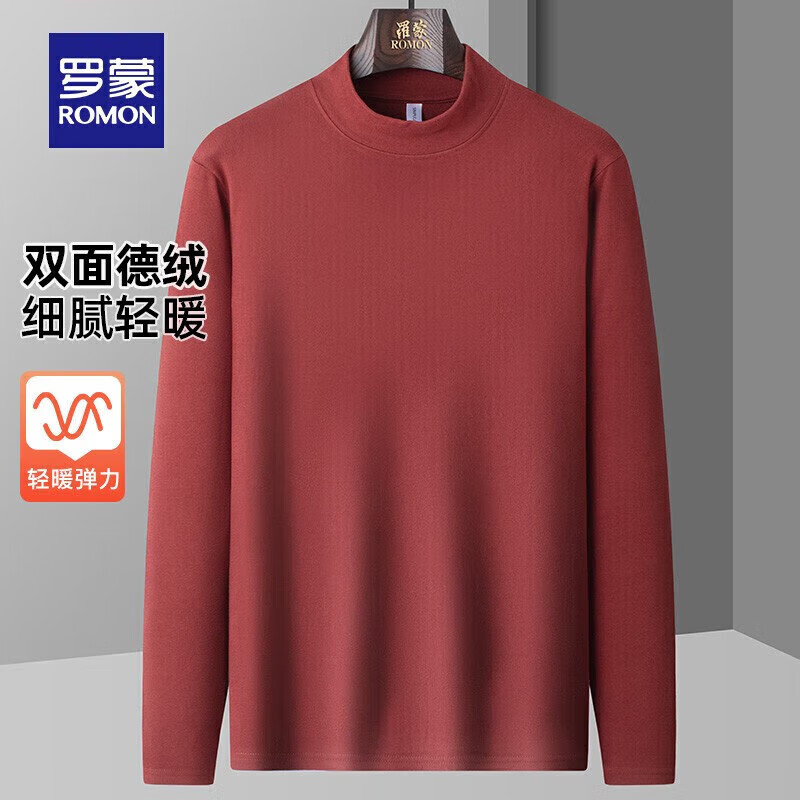 罗蒙(ROMON)德绒针织衫男秋季新款纯色毛衣中青年时尚百搭打底衫 303朱红 2XL 185(建议160-180斤)