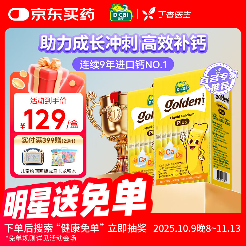 迪巧[丁香医生推荐]小黄条液体钙plus儿童钙青少年补钙柠檬酸钙 D3+K2 【囤货装】小黄条PLUS 10ml*40条