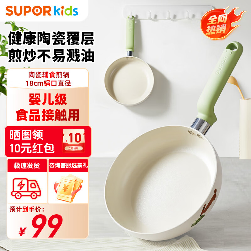 苏泊尔(SUPOR)宝宝辅食锅婴儿煎煮一体多功能奶锅煎锅不粘锅陶瓷平底锅套装 【陶瓷不粘】辅食煎锅 18cm
