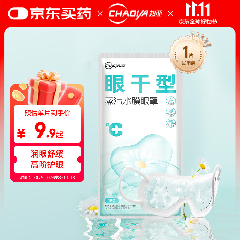 超亚蒸汽水膜眼罩干眼症型玻璃酸钠热敷贴缓解眼疲劳视力模糊冰敷1片