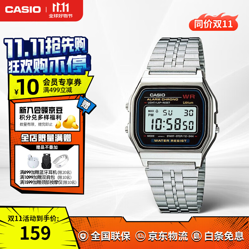 卡西欧(CASIO)经典复古小方块 简约休闲时尚学生电子手表 钢带防水中性情侣表 A159WA-N1DF