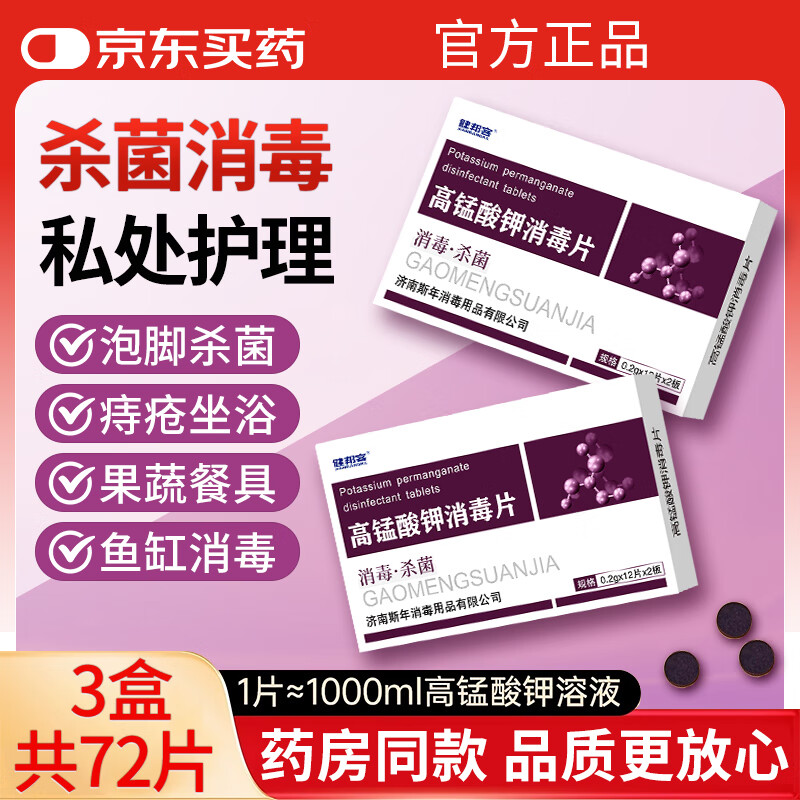 健邦客高锰酸钾消毒片粉末痔疮坐浴盆妇科专用溶液颗粒泡脚杀菌脚气鱼用