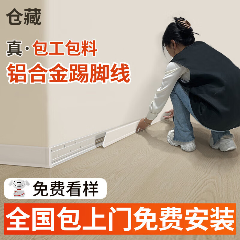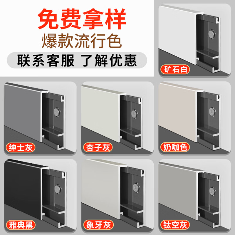 仓藏 超薄卡扣铝合金踢脚线包安装双层底座地脚线条金属踢脚板贴脚线 免费拿样品(收货返全款)