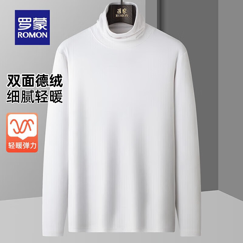 罗蒙(ROMON)德绒针织衫男秋季新款纯色毛衣中青年时尚百搭打底衫 304白色 2XL 185(建议160-180斤)
