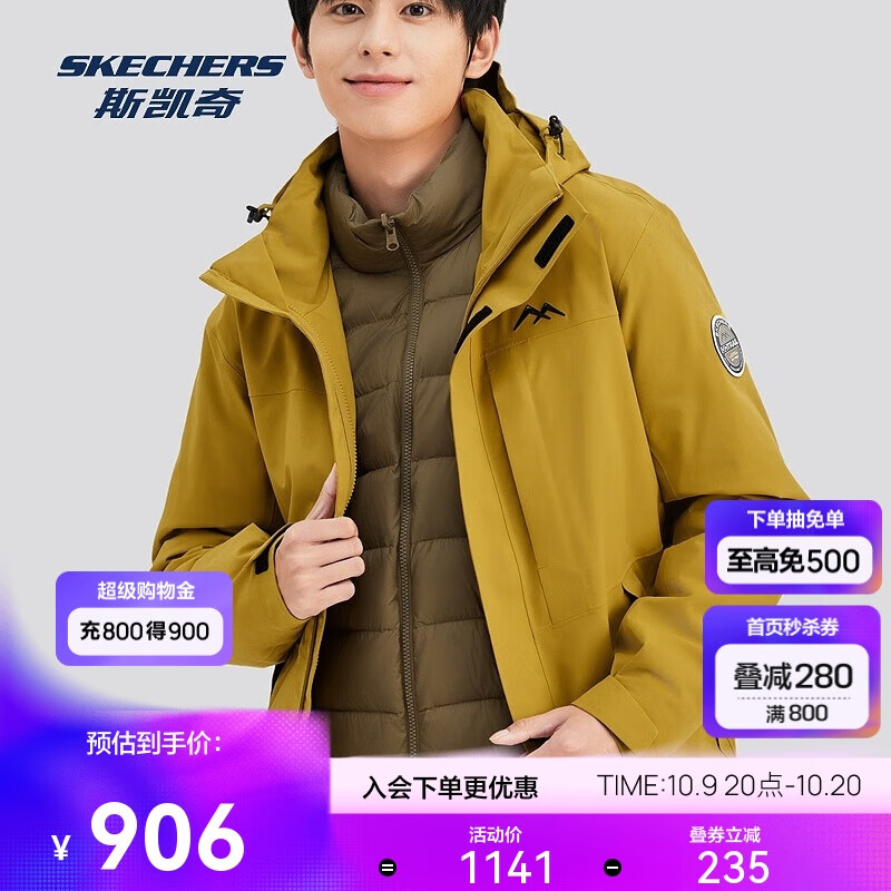 斯凯奇羽绒冲锋衣男秋冬季保暖三合一防风防水登山徒步外套