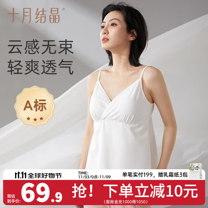 十月结晶哺乳背心孕妇内衣哺乳吊带夏季薄款产后产妇喂奶吊带 白色 L