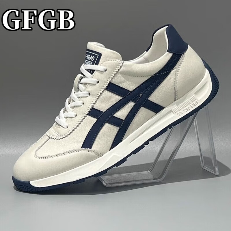 GFGB轻奢牛皮运动鞋男鞋2025秋季新款阿甘鞋男士休闲鞋透气运动鞋子男 米蓝 【高端皮面】 42 【皮鞋码】