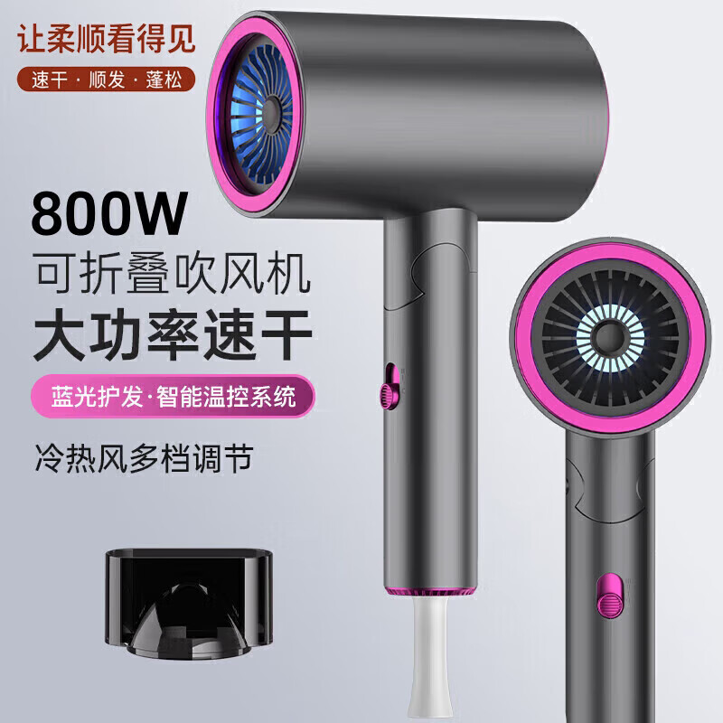 小米白色新款可折叠家用高速电吹风机负离子恒温护发理发店风筒大功率风力 胶原蛋白5亿水负离子800W《太空灰》
