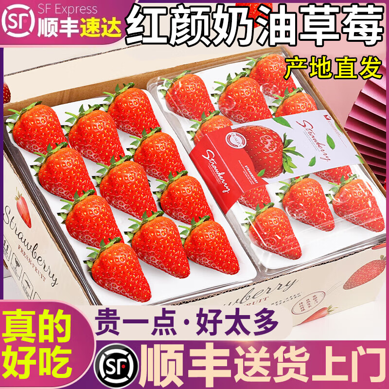 粤迎红颜奶油草莓【JD顺丰多地次日达】草莓香甜大凉山现摘新鲜现发 3斤A+级商超果【单果12g+】净2.4斤